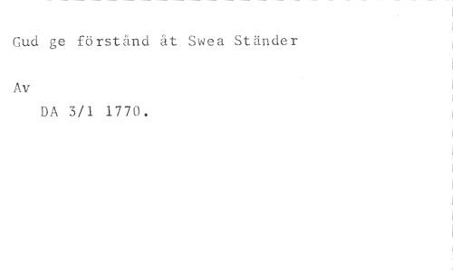 Gud ge förstånd åt Swea Ständer //// Av //// DA 3/1 1770.
