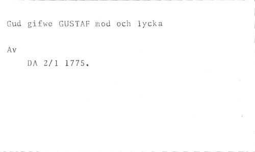 Gud gifwe GUSTAF mod och lycka //// Av //// DA 2/1 1775.