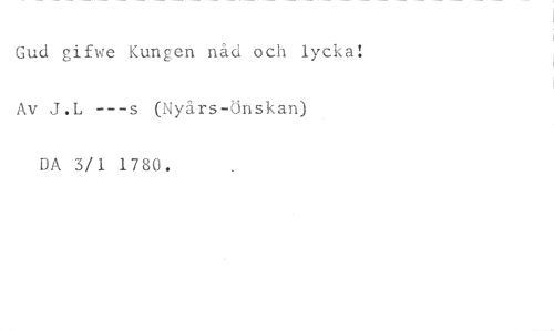 Gud gifwe Kungen nåd och lycka! //// Av J.L ---s (Nyårs-Önskan) //// DA 3/1 1780.