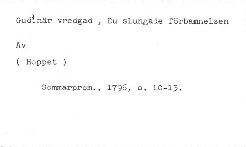 Gudt.när vredgad , Du slungade förbannelsen //// Av //// ( Hoppet ) //// Sommarprom., 1796, s. 10-13.