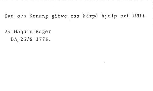 Gud och Konung gifwe oss härpå hjelp och Rätt //// Av Haquin Bager DA, 23/5 1775.