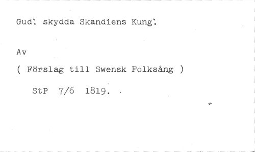 Gud: skydda Skandiens Kung: //// Av //// ( Förslag till Swensk Folksång ) //// StP 7/6 1819. .