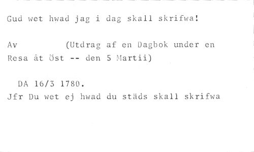 Gud wet hwad jag i dag skall skrifwa! //// Av (Utdrag af en Dagbok under en //// Resa åt Öst -- den 5 Martii) //// DA 1613 1780. //// Jfr Du wet ej hwad du städs skall skrifwa