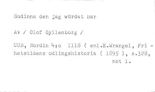 Gudinna den jag wördat har Av / Olof Gyllenborg //// /UUB, Nordin 4:o 1118 ( enl.E.Wrangel, Fri - hetstidens odlingshistoria ( 1895 ), s.328, //// not 1.