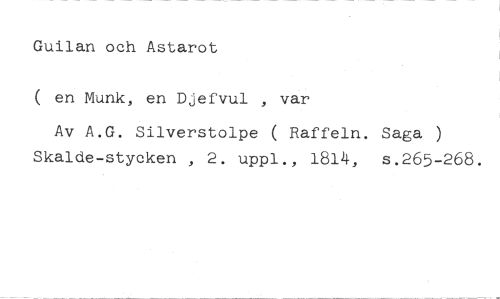 Guilan och Astarot //// ( en Munk, en Djefvul , var //// Av A.G. Silverstolpe ( Raffeln. Saga ) Skalde-stycken , 2. uppi., 1814, s.265-268.