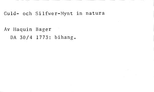 Guld- och Silfwer-Mynt in natura //// Av Haquin Dager //// DA 30/4 1773: bihang.