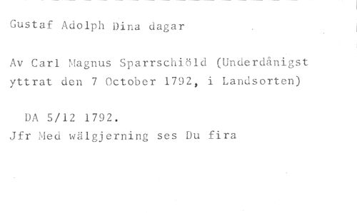 Gustaf Adolph Dina dagar //// Av Carl Magnus Sparrschiöld (Underdånigst yttrat den 7 October 1792, i Landsorten) //// DA 5/12 1792. //// Jfr Med wälgjerning ses Du fira