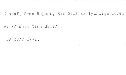 Gustaf, Swea Regent, Sin Staf så lyckliga förer //// Av /Anders Nicander? //// /DA 30/7 1771.