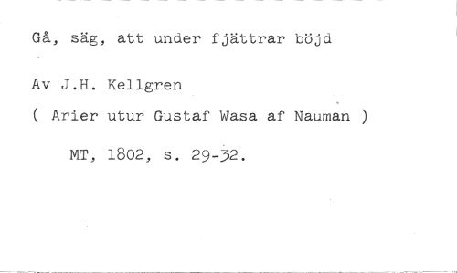 Gå, säg, att under fjättrar böjd //// Av J.H. Kellgren //// ( Arier utur Gustaf Wasa af Nauman ) //// MT, 1802, s. 29-32.