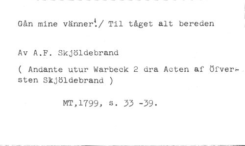 Gån mine vännert/ Til tåget alt bereden Av A.F. Skjöldebrand //// ( Andante utur Warbeck 2 dra Acten af Öfvensten Skjöldebrand ) //// MT,1799, s. 33 -39.