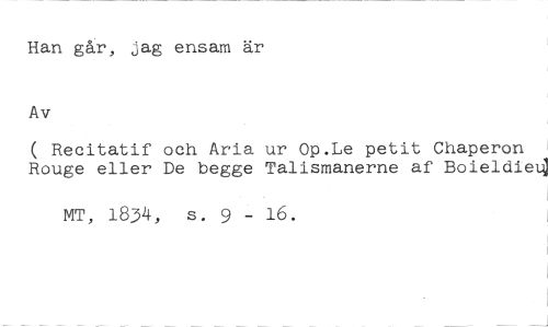 Han går, jag ensam är Av //// ( Recitatif och Aria ur Op.Le petit Chaperon Rouge eller De begge Talismanerne af Boieldiet //// MT, 1834, s. 9 - 16.