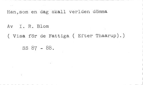 Han,som en dag skall verlden dömma //// Av 1. R. Blom //// ( Visa för de Fattiga ( Efter Thaarup).) //// ss 87 - 88.