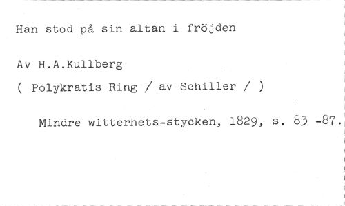 Han stod på sin altan i fröjden //// Av H.A.Kullberg //// ( Polykratis Ring / av Schiller / ) //// Mindre witterhets-stycken, 1829, s. 83 -87.