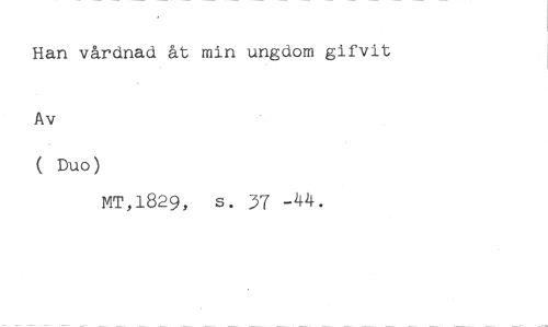 Han vårdnad åt min ungdom gifvit Av //// ( Duo) //// MT,1829, s. 37 -44.