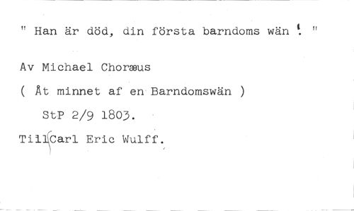 " Han är död, din första barndoms wän //// Av Michael Chormus //// ( Åt minnet af en Barndomswän //// StP 2/9 1803. - //// Ti14Carl Eric Wulff.