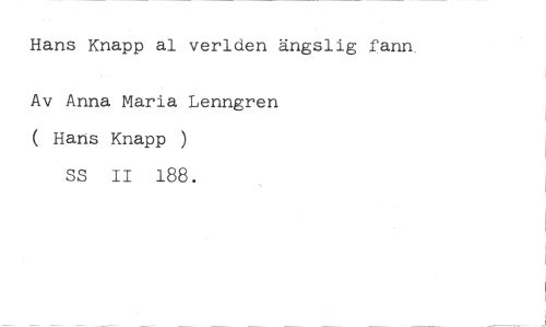 Hans Knapp al verlden ängslig fann. //// Av Anna Maria Lenngren ( Hans Knapp ) SS II 188.