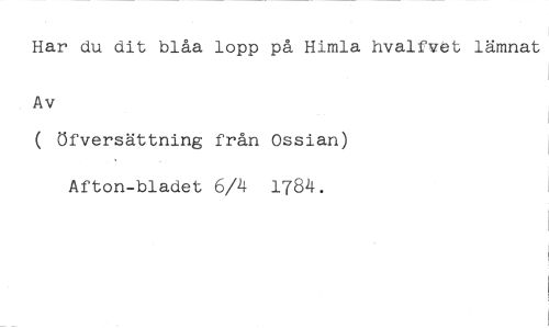 Har du dit blåa lopp på Himla hvalfvet lämnat //// Av //// ( öfversättning från Ossian) //// Afton-bladet 6/4 1784.