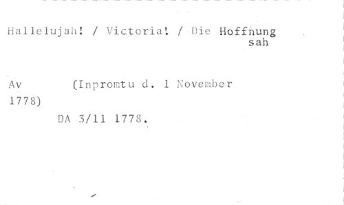 Hallelujah! / Victoria: rDie Hoffnung //// s ah //// Av (Inpromtu d. 1 November //// 1778) //// DA 3/11 1778.