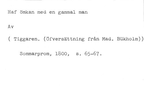 Haf ömkan med en gammal man //// Av //// ( Tiggaren. (Öfversättning från Mad. Bilkholm)) //// Sommarprom, 1800, s. 65-67.