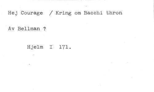 Hej Courage / Kring om Bacchi thron Av Bellman ? //// Hjelm I 171.