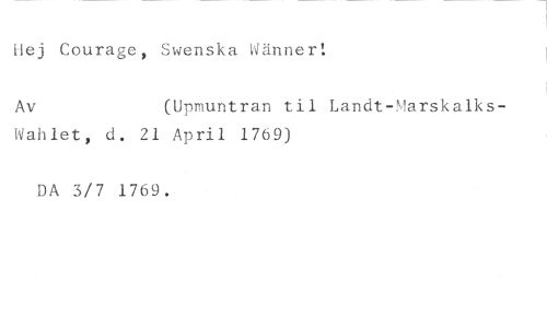nej Courage, Swenska Wänner! //// Av (Upmuntran til Landt-Marskalks- //// Wahlet, d. 21 April 1769) //// DA 3/7 1769.