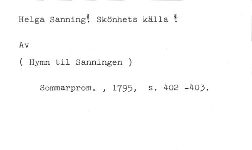 Helga Sanning! Skönhets källa //// Av //// ( Hymn til Sanningen ) //// Sommarprom. , 1795, s. 402 -403.