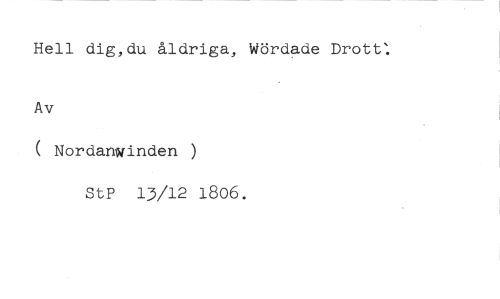 Hell dig,du åldriga, Wördade Drott: //// Av //// ( Nordanwinden //// StP 13/12 1806.