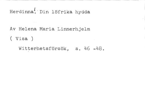 i Din löfrika hydda //// Av Helena Maria Linnerhjelm ( Visa ) //// Witterhetsförsök, s. 46 -48.