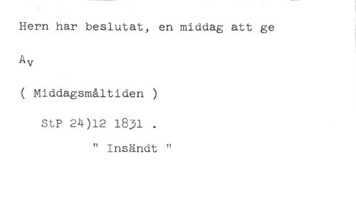 Hern har beslutat, en middag att ge Av //// ( Middagsmåltiden ) //// StP 2T)12 1831 . //// " Insändt "
