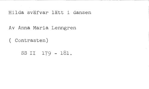 Hilda sväfvar lätt i dansen //// Av Anna Maria Lenngren ( Contrasten) //// SS II 179 - 181.