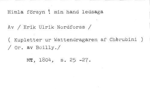 Himla försyn t min hand ledsaga Av / Erik Ulrik Nordforss //// /( Kupletter ur Wattendragaren af Chbrubini ) / Or. av Boilly. //// /MT, 1804, s. 25 -27.