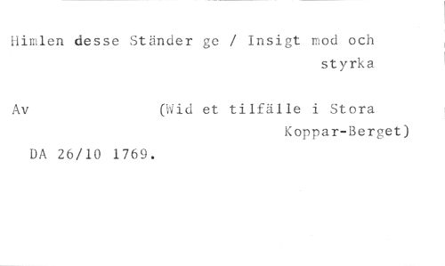 Himlen desse Ständer ge / Insigt mod och //// styrka //// Av (Wid et tilfälle i Stora //// Koppar-Berget) //// DA 26/10 1760.