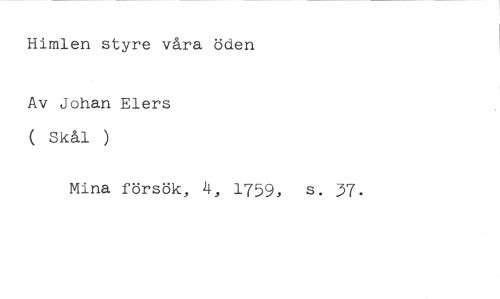 Himlen styre våra öden //// Av Johan Elers ( Skål ) //// Mina försök, 4, 1759, s. 37.