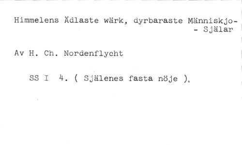 Himmelens Ädlaste wärk, dyrbaraste Människjo- //// - Själar //// Av H. Ch. Nordenflycht //// SS 1 4. ( Själenes fasta nöje ),