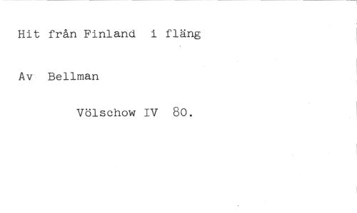 Hit från Finland i fläng //// Av Bellman //// Völschow IV 80.