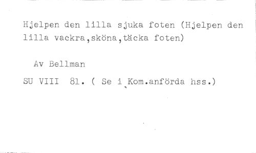 Hjelpen den lilla sjuka foten (Hjelpen den lilla vackra,skönaltäcka foten) //// Av Bellman //// SU VIII 81. ( Se i Kom.anförda hss.)