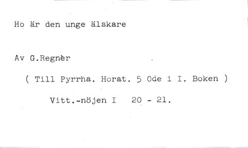 Ho är den unge älskare //// Av G.Regnbr //// ( Till Pyrrha. Horat. 5 Ode i I. Boken ) //// Vitt.-nöjen I 20 - 21.