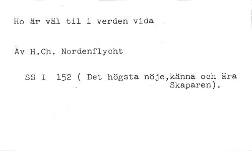 Ho är väl til i verden vida Av H.Ch. Nordenflycht //// SS I 152 ( Det högsta nöje,känna och ära //// Skaparen).