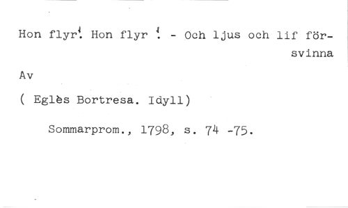 Hon flyrt Hon flyr t - Och ljus och lif för- //// svinna //// Av //// ( Eglbs Bortresa. Idyll) //// Sommarprom., 1798, s. 74 -75.