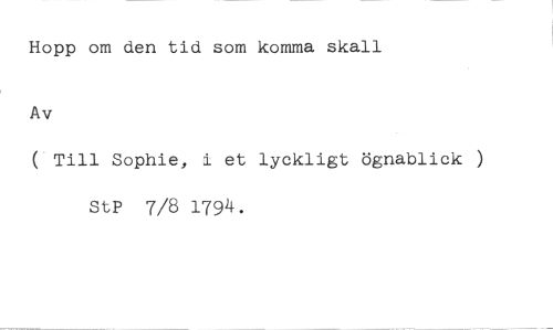 Hopp om den tid som komma skall //// Av //// ( Till Sophie, i et lyckligt ögnablick ) StP 7/8 1794.