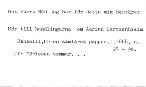 Hos Eders Nåd jag har för detta mig besvärat //// Hör till handlingarna om Adrian Hertzenhielm Hanselli,Ur en samlares papper,1,1868, s. //// 95 - 96. //// Jfr Förleden sommar. .