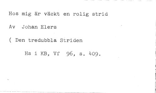 Hos mig är väckt en rolig strid Av Johan Elers //// ( Den tredubbla Striden //// Hs i KB, Vf 96, s. 409.