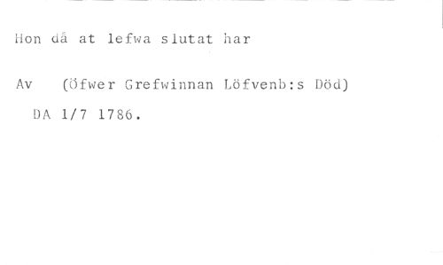 Hon då at lefwa slutat har //// Av (Öfwer Grefwinnan Löfvenb:s Död) //// DA 1/7 1786.