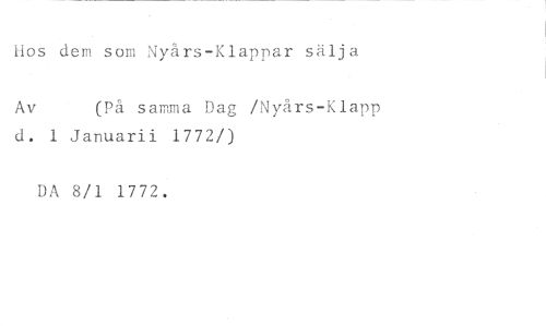 Hos dem som Nyårs-Klappar sälja //// Av (På samma Dag /Nyårs-Klapp //// d. 1 Januarii 1772/) //// DA 8/1 1772.