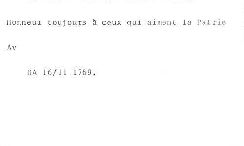 Honneur toujours å ceux qui aiment la Patrie //// Av //// DA 16/11 1769.