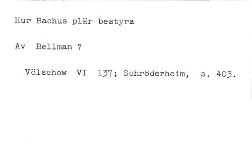 Hur Bachus plär bestyra Av Bellman ? //// Völschow VI 137; Schröderheim, s. 403.