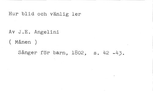 Hur blid och vänlig ler //// Av J.E. Angelini ( Månen ) //// Sånger för barn, 1802, s. 42 -43.