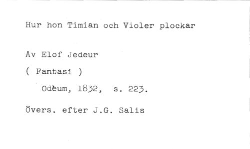 Hur hon Timian och Violer plockar //// Av Elof Jedeur ( Fantasi ) //// Odum, 1832, s. 223. //// övers. efter J.G. Salis