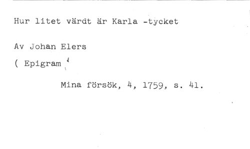 Hur litet värdt är Karla -tycket //// Av Johan Elers ( Epigram 4 //// Mina försök, 4, 1759, s. 41.