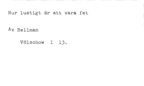 Hur lustigt är att vara fet Av Bellman //// Völschow I 13.